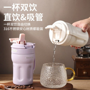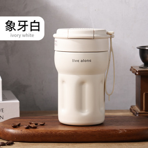 人気の屋外ポータブルストローコーヒーカップ 316 ステンレス鋼魔法瓶カップ無地密封漏れ防止ギフトカップ