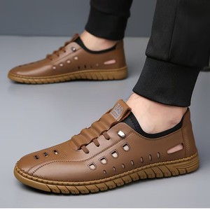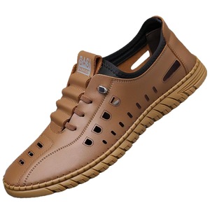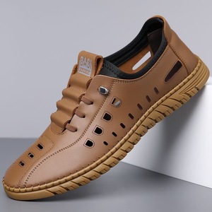 正品蜻蜓牌夏季新款男士凉鞋真皮透气镂空休闲鞋软底防滑凉皮鞋男