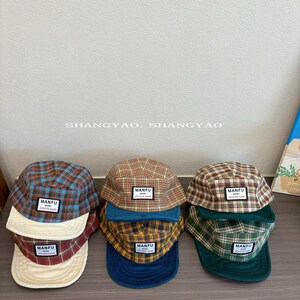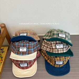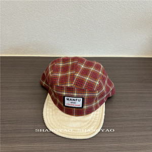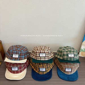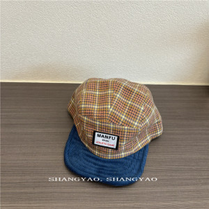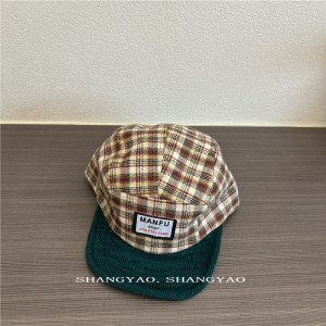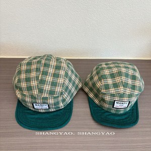 親子チェック柄英国子供用帽子 2025 秋新作ひさしキャップソフトつばコーデュロイファッション野球帽