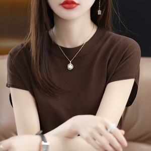 アイスシルク半袖Tシャツレディース夏新作ラウンドネックTシャツルーズインナー万能ニットボトムシャツレディース薄手トップス