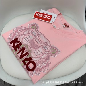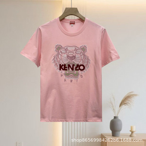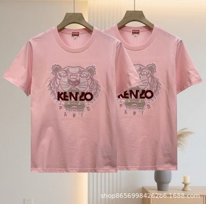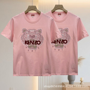 跨境 专供KE N老虎头情侣款字母粉色刺绣虎头圆领短袖T恤