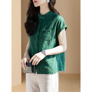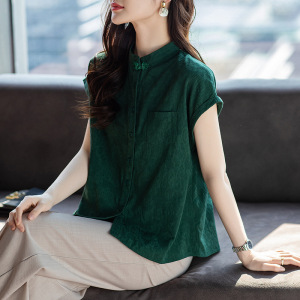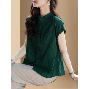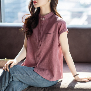 短袖小衫衬衣女装2025新款棉麻春夏季衬衫上衣亚麻打底妈妈装