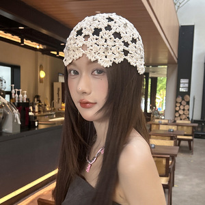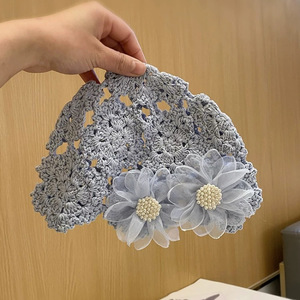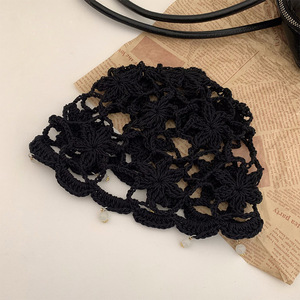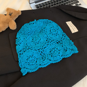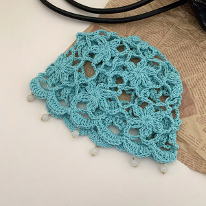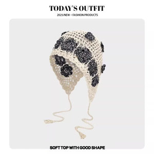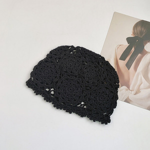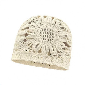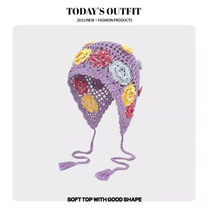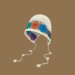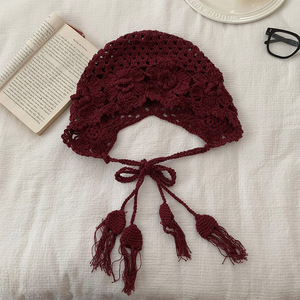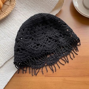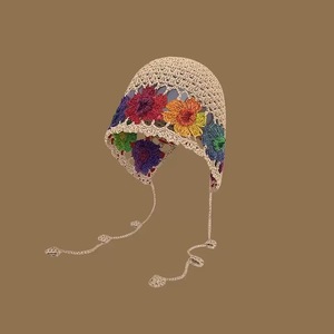 女性用の春夏の手織り中空つば帽子、エスニックスタイルのフックフラワー、タッセルストラップ、プルオーバーニット帽、多用途