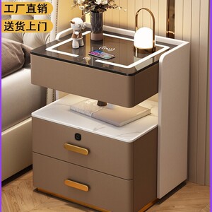 スマートベッドサイドテーブル、シンプル、モダン、ハイエンド、3引き出し、軽い高級感、ホームベッドルームベッドサイド収納、無垢材収納キャビネット