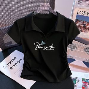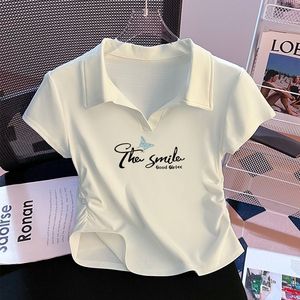 2025 夏の新ファッションレタープリントファッション右肩半袖 Tシャツ女性のルーズで多用途な外国スタイルのトップ