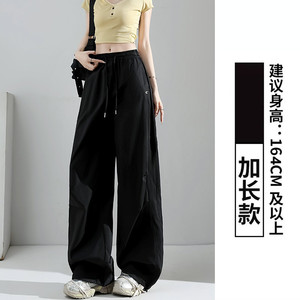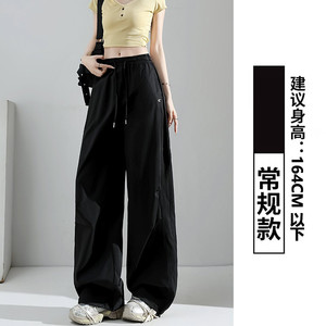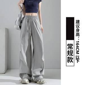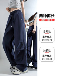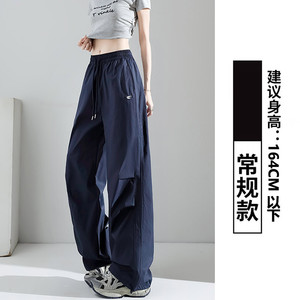 ネイビーブルーアメリカンスポーツパンツレディース夏薄手カジュアルルーズドレープ速乾ワイドレッグオーバーオール小柄な人向け