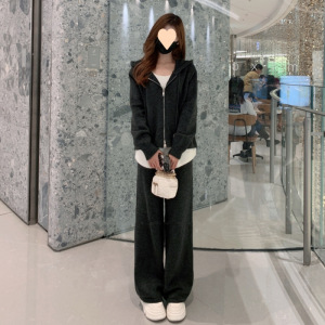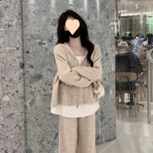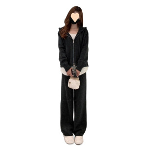 春秋季套装女2025年新款休闲时尚假两件连帽卫衣宽松阔腿裤两件套