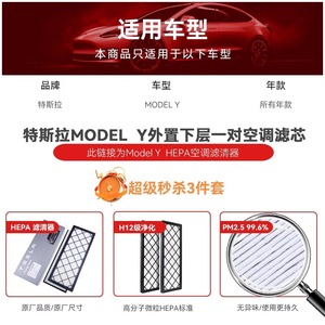 テスラモデル Y エアコンフィルターオリジナル HEPA 空気浄化外部下部フィルターエンドウ豆 Y に適しています。