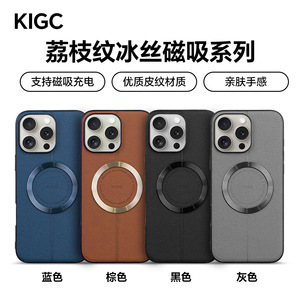 KIGCは16pro携帯電話ケースに適しています、高度なライチパターンプレーンレザー磁気吸引iPhone16promax新しい16トレンド