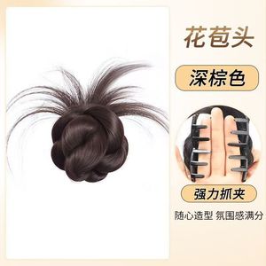ウィッグ、ローカットチキンフェザーボールヘッド、人工毛クリップ、花のつぼみヘッド、女性用の怠惰でふわふわの高級ヘアウィッグバッグ
