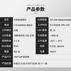 ソーラーキャットアイ警告灯高速道路同期点滅黄色と白の誘導灯 LED キャットアイストロボライト
