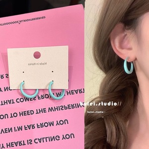 多巴胺彩色滴釉耳环女简约夏季百搭甜美耳钉耳圈素圈耳饰几何风