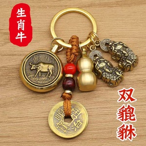 真鍮十二支守護聖人ツイン合金貔貅小さなひょうたん車のキーホルダーペンダント卸売ドロップシッピング