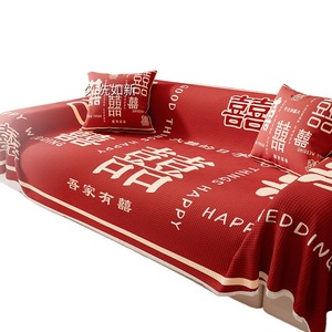 新しい中国風の結婚式のソファクッション、オールシーズンユニバーサル、新年の赤いソファクッション、お祝いの結婚式の部屋の装飾カバー布タオル