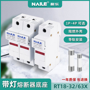 RT18-32/63X 1P (新品、PVC厚銅部品) ライト付きレールヒューズベース