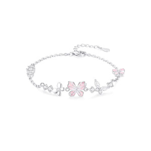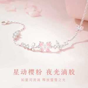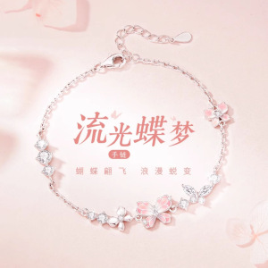 Liuguang Die Meng S925 シルバー発光蝶ブレスレットガールズライト高級ピンクロマンチックな蛍光ブレスレットホリデーギフトホワイト