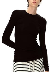 スポットアメリカンウールテンセル長袖レトロ軽量シープTシャツレディーススリムフィット肌に優しい質感ストレッチボトム