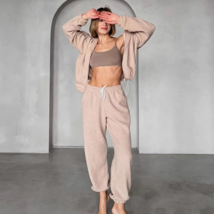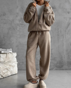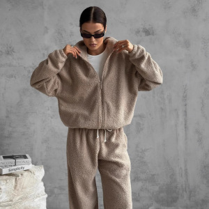 クロスボーダースウェットシャツカーディガンスーツ女性のヨーロッパとアメリカの2025秋冬新スポーツレジャーポーラーフリースカーディガンスウェットシャツスーツ