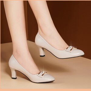 高品质软皮女鞋2025春秋季新款单鞋女中跟粗跟高跟鞋休闲百搭皮鞋