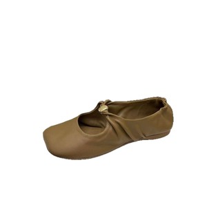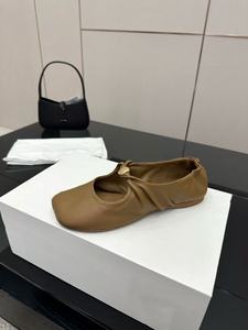Haute Couture 25 春夏ツイストラムスキンスクエアトゥバレエフラットシューズママレトロスタイルフラットシューズ女性用