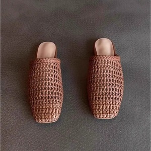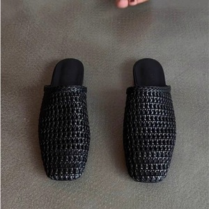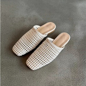 ソフトレザーバージョン~2025年新作女性用編み込み中空つま先ハーフスリッパ、夏用フラットソールスクエアトゥファッショナブルなスリッパ、怠け者用。
