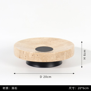 中古黄洞石果盘装饰品摆件高级感圆形高脚托盘茶几餐桌面收纳盘子