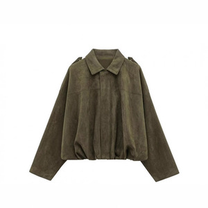 国境を越えた貿易婦人服スエードテクスチャ 2025 春と秋のファッションパイロットバットスリーブジッパージャケットトップジャケット