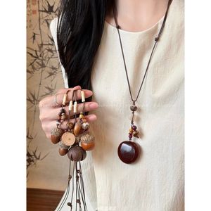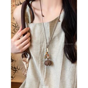 新しい中国風のロングドングルペンダントネックレス女性のためのレトロエスニックスタイル禅デザインセーターチェーンネックレスアクセサリー