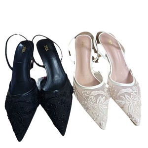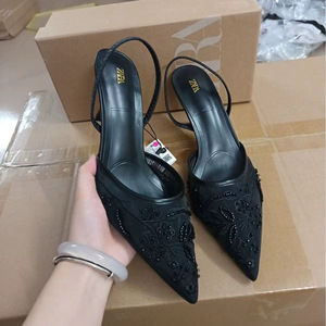ZA スペイン 8326 モデル外国貿易メッシュ中国風ハイヒールパールハイエンドリネングレーパンプス婦人靴