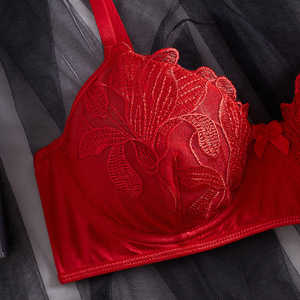 欧米風クロスボーダー夏用レディースブラセット、極薄レース、赤い刺繍、スチールリング入り、ピュアでセクシーなランジェリーセット