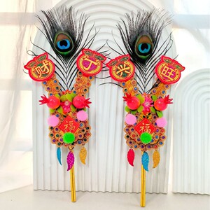 潮山神祭りのお祝い用品家庭用フェニックステールゴールデンフラワー香炉純粋な手作り紙神様の花大、中、小
