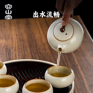 Rongshantang ベージュ Ru Kiln トラベルティーセット オフィス ライト 高級 ハイエンド ティーポット ポータブル ギフトボックス