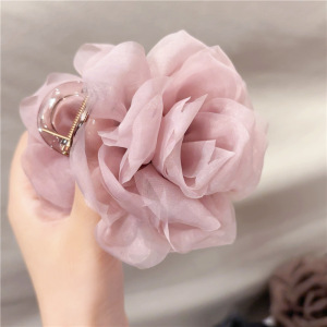 ライトガーゼローズグリッパー、高級感、シンプルでエレガント、シャーククリップ、ヘアピン、ヘアアクセサリー、新しいスタイル
