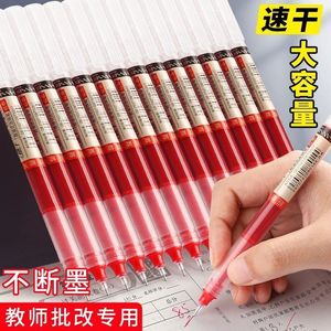 红色直液式走珠笔简约红笔水性笔老师批改作业中性笔学生标记字笔