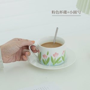 コーヒーマグ韓国ディナープレートアフタヌーンティーチューリップピンクセットレトロカップガーリーハートドリンクセラミックカップ