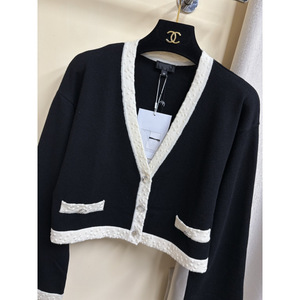 深セン南油貨物〜ハイバージョン2025夏新スタイルコントラストカラーリトルフレグランスニットカーディガン女性用レイジースタイルセレブ
