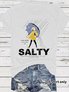 ヨーロッパとアメリカのTシャツ半袖塩味表現パック女の子傘クロスボーダー夏ラウンドネック既製トップス女性対外貿易注文