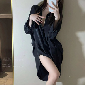 女性用ナイトガウン夏薄い純粋な欲望新しい大きいサイズシルクシフォン白シャツパジャマホットハイエンドは屋外で着用できます
