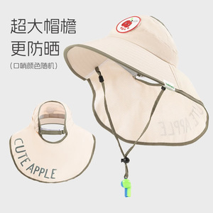 儿童防晒帽子夏季遮阳披肩护脖帽男女宝宝可爱大檐空顶帽