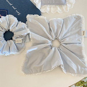韓国風の優しい乳白色のブルーレースのヘアゴム、韓国風の爽やかなヘアゴム、ゴムバンド、ヘアロープ、ヘアアクセサリー