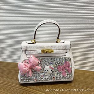 2025 新しい模擬レザー高品質ダイヤモンドニッチライト高級ケリーバッグシングルショルダークロスボディハンドヘルドレディースバッグ小さな正方形バッグ