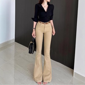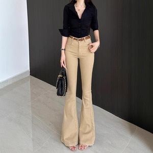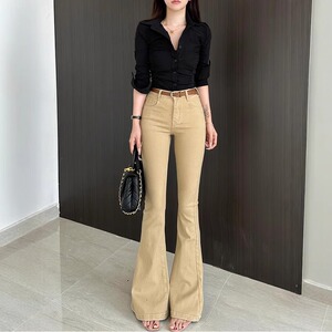 卡其色高腰老钱风微喇牛仔裤女2025夏季新款净版修身显瘦喇叭裤