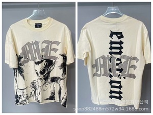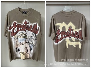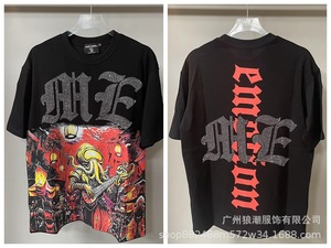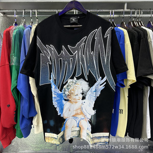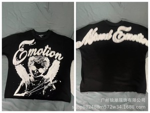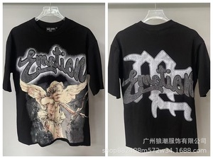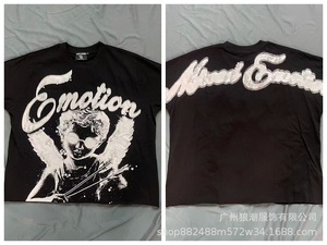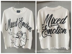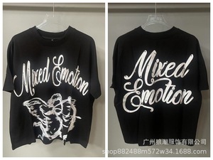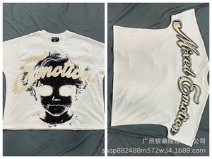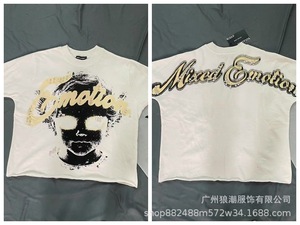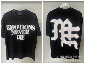 MIXED EMOTION レトロホットダイヤモンドプリントロゴ美しいトレンディなラウンドネックルーズカジュアル半袖Tシャツ男性と女性用