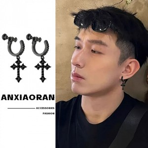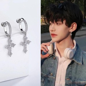 フルダイヤモンドクロスネジイヤークリップメンズトレンディなハイエンドジルコンイヤーバックルヨーロッパとアメリカのクリエイティブなヒップホップスタイルのハンサムなイヤリング