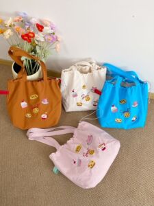 厚手の裏地!ヘビーウェイト刺繍ナイロン巾着バッグフレッシュドーパミンショルダーバッグ通勤トートバッグ学生バッグ