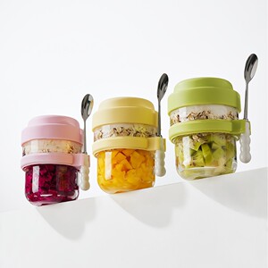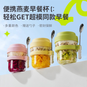 便携早餐杯隔夜燕麦杯密封牛奶杯带盖勺酸奶杯高颜值奶茶杯批发