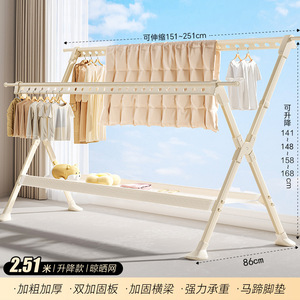 阳台加厚晾衣架落地折叠室内家用双杆伸缩可升降凉晒衣架挂衣服架