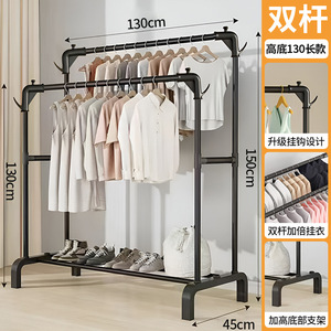 ダブルポール衣類乾燥ラック床置き屋内ルーム衣類ラックホームベッドルーム衣類収納ラックコートラック