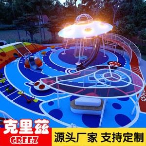 户外小区飞碟滑梯游戏游乐设施发光无动力不锈钢太空主题乐园定制