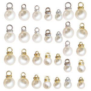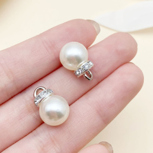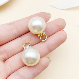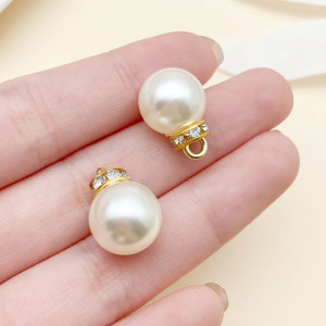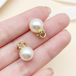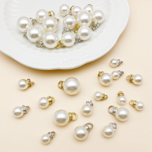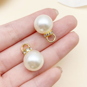 ABS 高光沢乳白 K/KC ゴールドラウンドドットダイヤモンド模造真珠ペンダント DIY キーホルダーイヤリングネックレスジュエリーアクセサリー